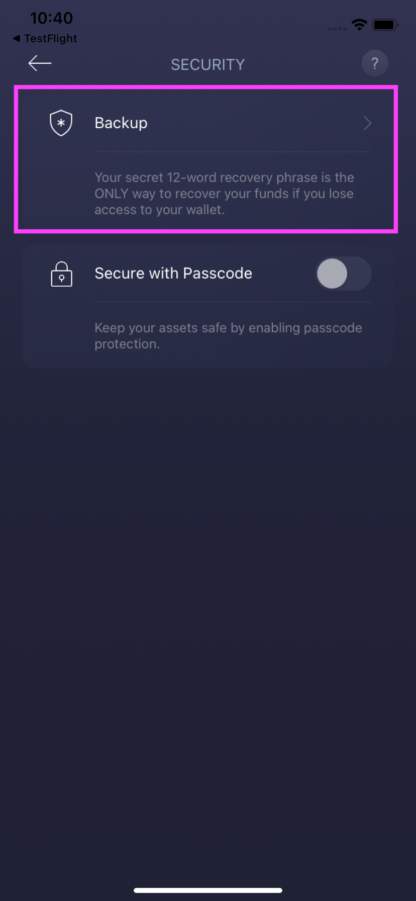 In one case you lot have had a await around the Exodus wallet and you lot like information technology, it is time to go through the backup. During the fill-in process, you will receive the (randomly generated) 12- word secret recovery phrase of your wallet. This is a secret phrase that functions as a primary key to all of your assets. If you lot would like to know more about your undercover phrase then please check out this commodity: Everything yous demand to know about your 12-word hush-hush recovery phrase.