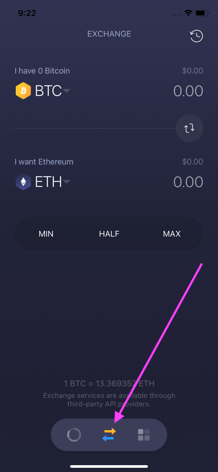 You can securely and rapidly exchange assets directly from your wallet via our 3rd-party exchange API providers. You can merchandise between 70+ fully supported blockchain avails. No sign-up or account creation is necessary. Exodus makes information technology easy to use the exchange app to commutation your favorite assets from the privacy and comfort of your wallet.
