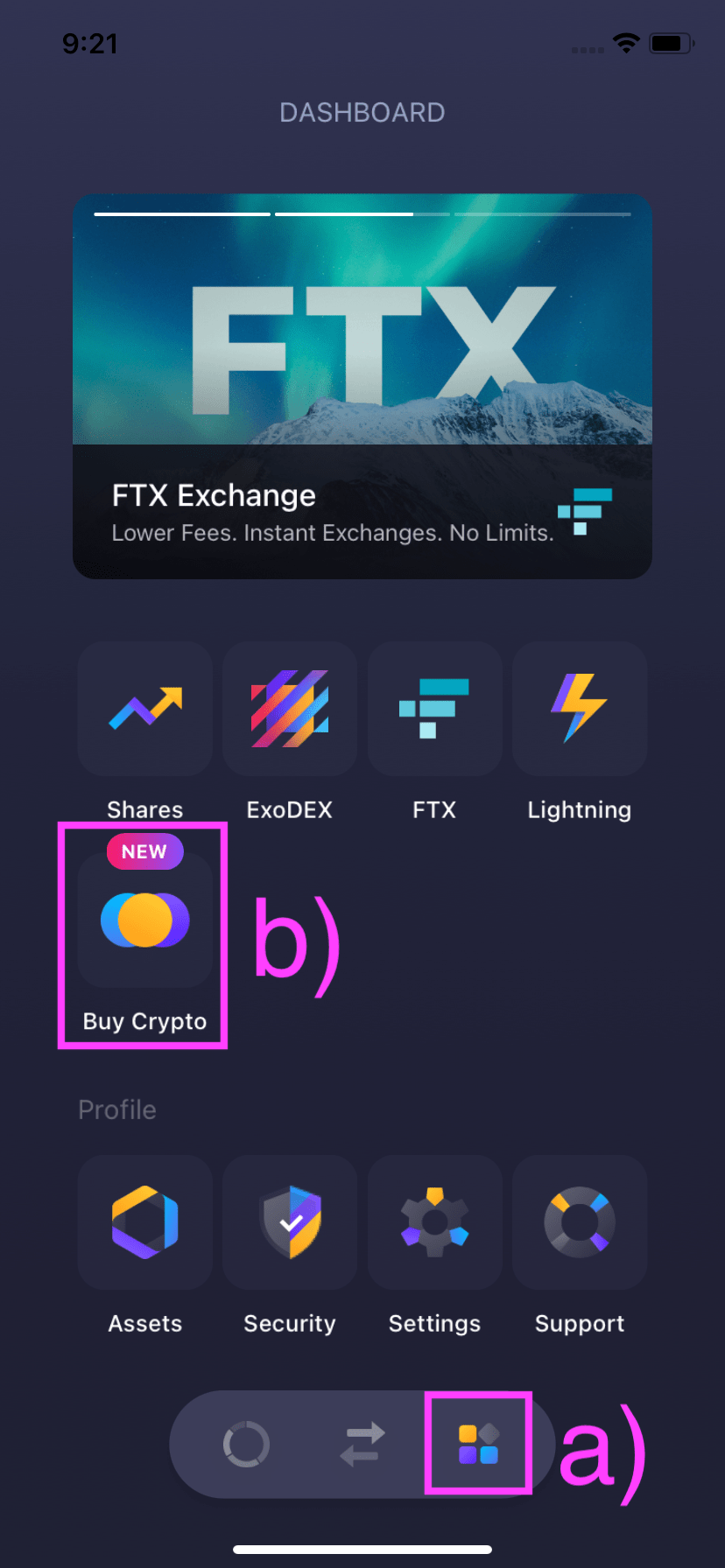 Yous tin use Ramp by a) borer on the Dashboard icon, then b) tap Buy Crypto .
